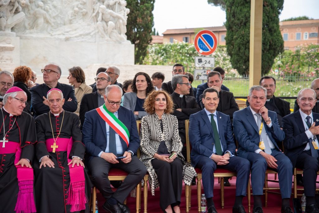 También atestigua la relevancia de la cita del pasado sábado 17 de mayo la presencia en el palco de autoridades, dispuesto en la Vía del Circo Massimo, de representantes de las instituciones nacionales, regionales y locales. En ese sentido, el Gobierno Central estuvo en la persona de su vicepresidenta primera, María Jesús Montero, quien declaró a los medios de comunicación que la Gran Procesión ha supuesto “un día grande para Andalucía y para España” y valoró el evento como una forma de compartir el sentimiento en la calle y mostrar un patrimonio y una cultura “que atraen un volumen muy importante de personas a nuestra tierra”. Por otro lado, también estuvo presente la embajadora de España ante la Santa Sede, Isabel Celaá.