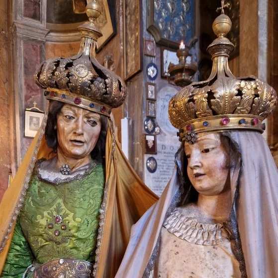 En el altar mayor hoy preside un lienzo de Santa Ana con la Virgen firmado por Arturo Viligiardi, de comienzos del siglo XX. En la procesión participará el grupo escultórico, recién restaurado, de Santa Ana con la Virgen Niña, que reside en Santa Catalina della Rota, que protagoniza la conocida como ‘Procesión de los vientres’ cada 26 de julio.